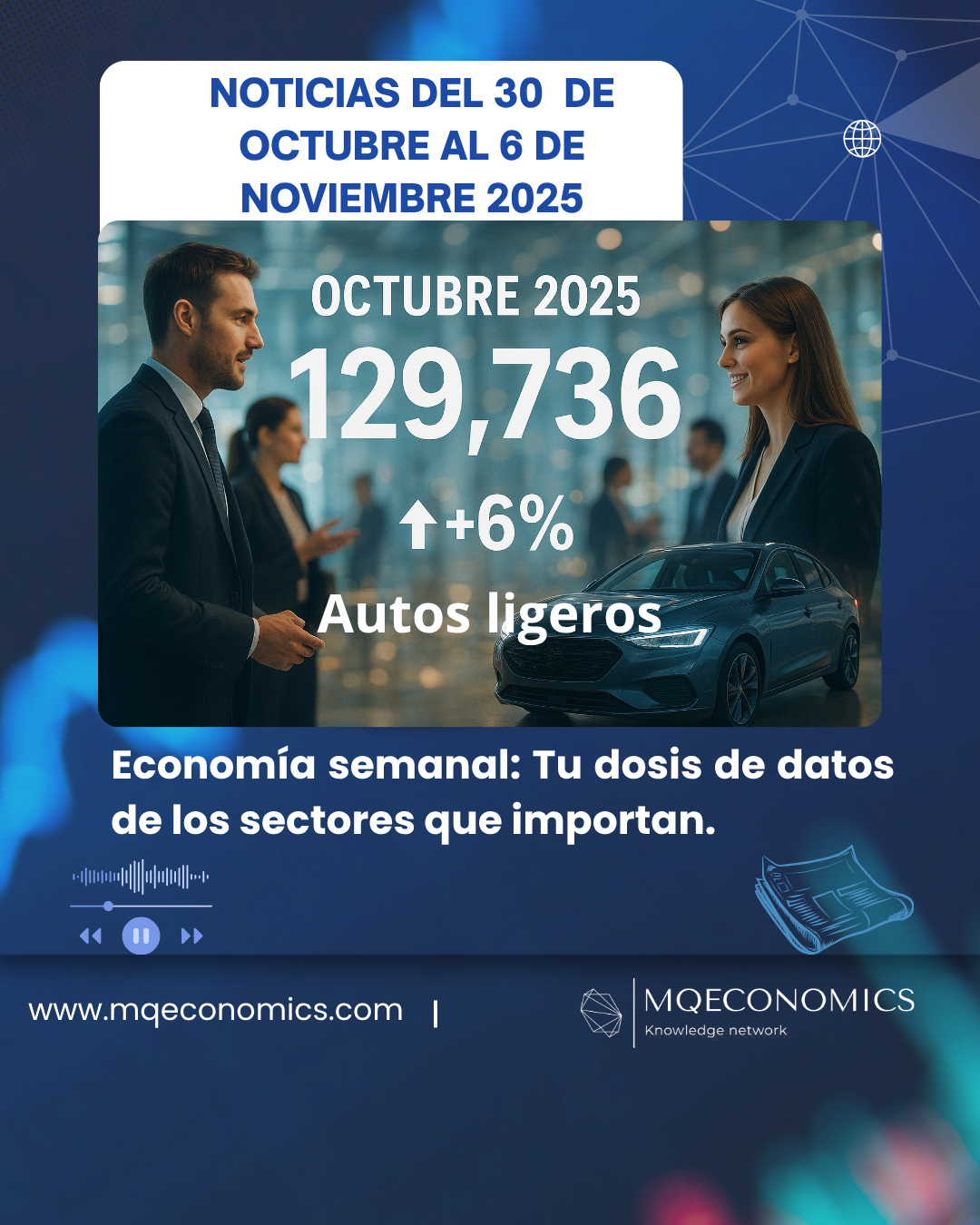 Las ventas de vehículos ligeros alcanzaron 129,736 unidades en octubre 2025, un repunte del 6 % respecto al año anterior, lo que equivale a 7,330 autos más rodando por las calles. Sin embargo, los analistas advierten que el crecimiento depende del acceso a financiamiento y del mercado externo.