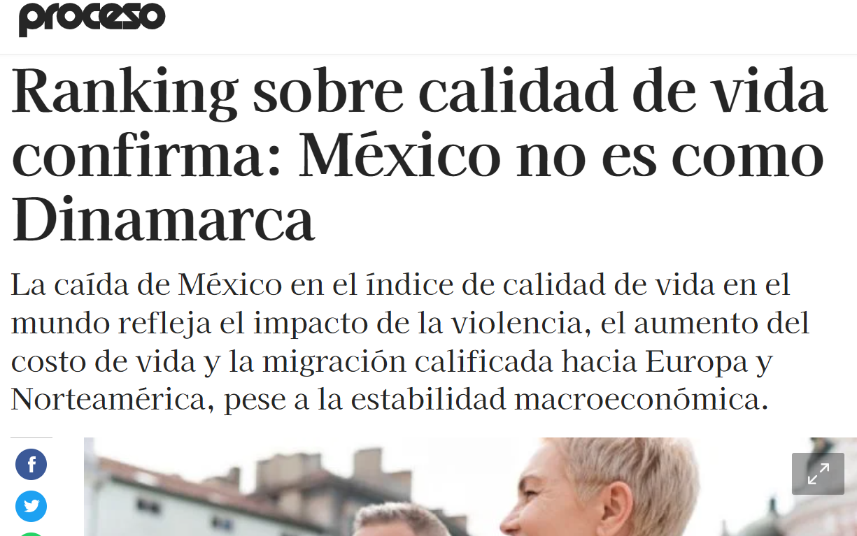 En la publicación del 18 de enero del presente año, la revista “Proceso” ofrece un artículo tituado “Ranking sobre calidad de vida confirma: México no es como Dinamarca”, en el que se “informa” sobre  el reciente informe de Global Citizen Solutions (GCS), una firma consultora especializada en movilidad internacional y programas de ciudadanía por inversión